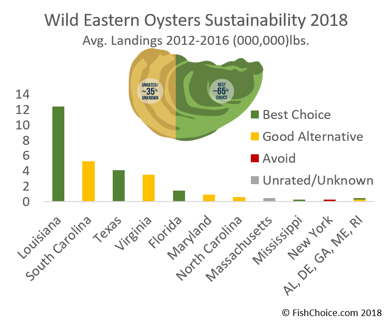 In Canada, oyster fishing is subject to seasonal and gear restrictions. Some Mexican oyster beds are controlled by fishermen’s’ cooperatives. The Eastern oyster is managed at the state and municipal level in the U.S. and regulations vary. The Chesapeake Bay oyster fishery is both public and leased, meaning certain areas can be leased for harvesting. Any that aren’t closed as reserves or due to safety concerns are available to the public. State agencies set regulations that govern the area, including gear restrictions, seasonal limits, time limits, and catch limits.