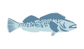 Lingcod grow quickly and can reach lengths of five feet weighing 80lbs. Lingcod can live up to 20 years with males reaching maturity around age 2 (20" long) and females age 3 (30" long). The spawing process of lingcod involves males claiming suitable territory for nesting, females making only a brief appearance to lay eggs, and males guarding the nests until they hatch in 8-10 weeks. As lingcod develop they move from eating zooplankton as larvae, shellfish as small juveniles, small finfish (such as herring) as large juveniles, until they become aggressive predators as adults feeding on bottom dwelling fish and shellfish. Larval and juvenile lingcod are important food sources for salmon and rockfish, while marine mammals and sharks rely on large juvenile and adult lingcod as food sources.
