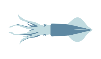 Longfin squid are characterized by their long fins that are at least half the length of their mantles (the main part of the body above the head). They are usually pink or orange and mottled with brown or purple and can change their skin color and pattern at will to hide or escape from predators, help them hunt, and to communicate and attract mates. Like most squid, they have large eyes that are covered by a cornea, which assist in hunting. Despite their good eyesight and ability to change color at will, longfin squid are thought to be colorblind. They are invertebrates and like other squid species do not have outer shells and instead have an internal shell called a “pen.”
